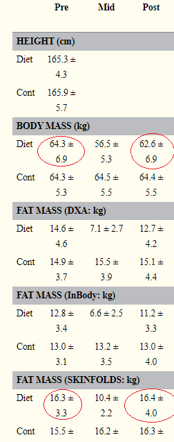 Kobiety, mimo 5 miesięcy intensywnego treningu siłowego oraz aerobowego i restrykcyjnej diety, zakończyły z efektem niemal identycznym jak grupa kontrolna, która nie ćwiczyła i nie stosowała diety.